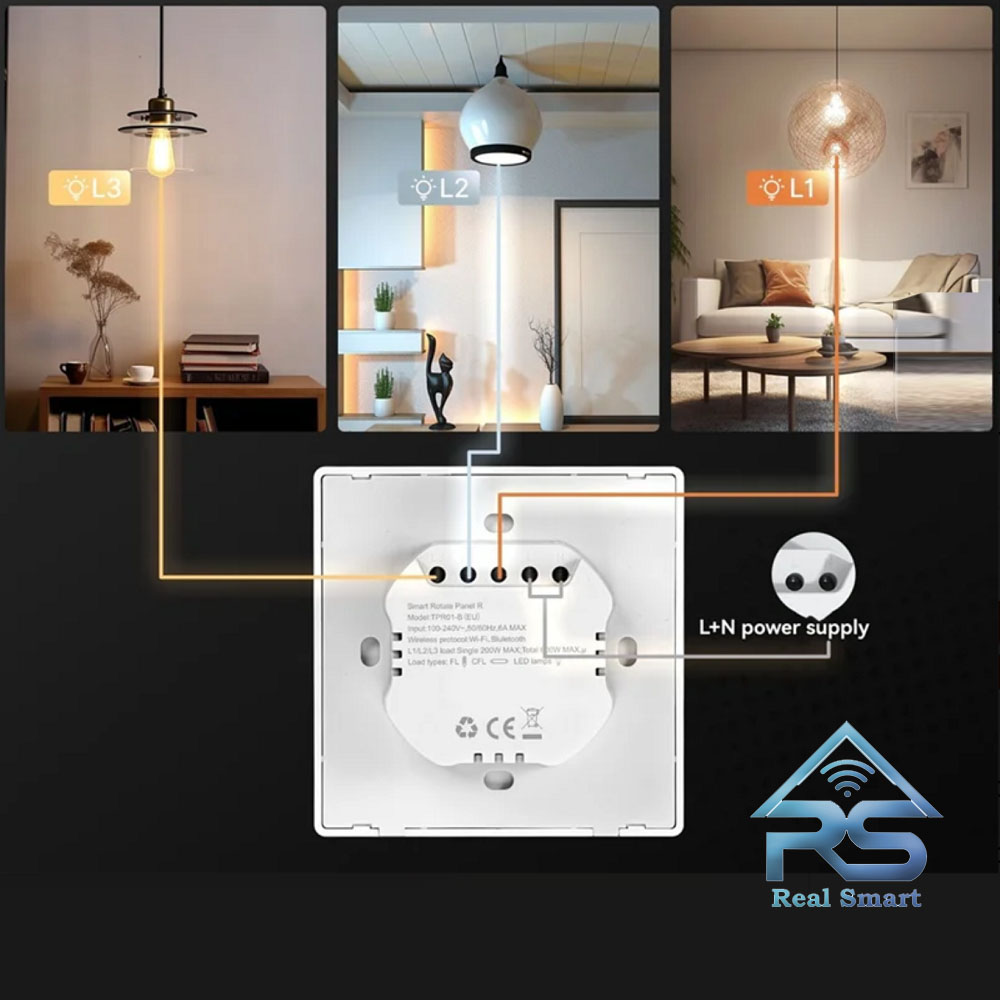 این محصول هوشمند تویا دارای 3 رله داخلی میباشد که قادر است تا سقف 200وات(هریک از خروجی ها)