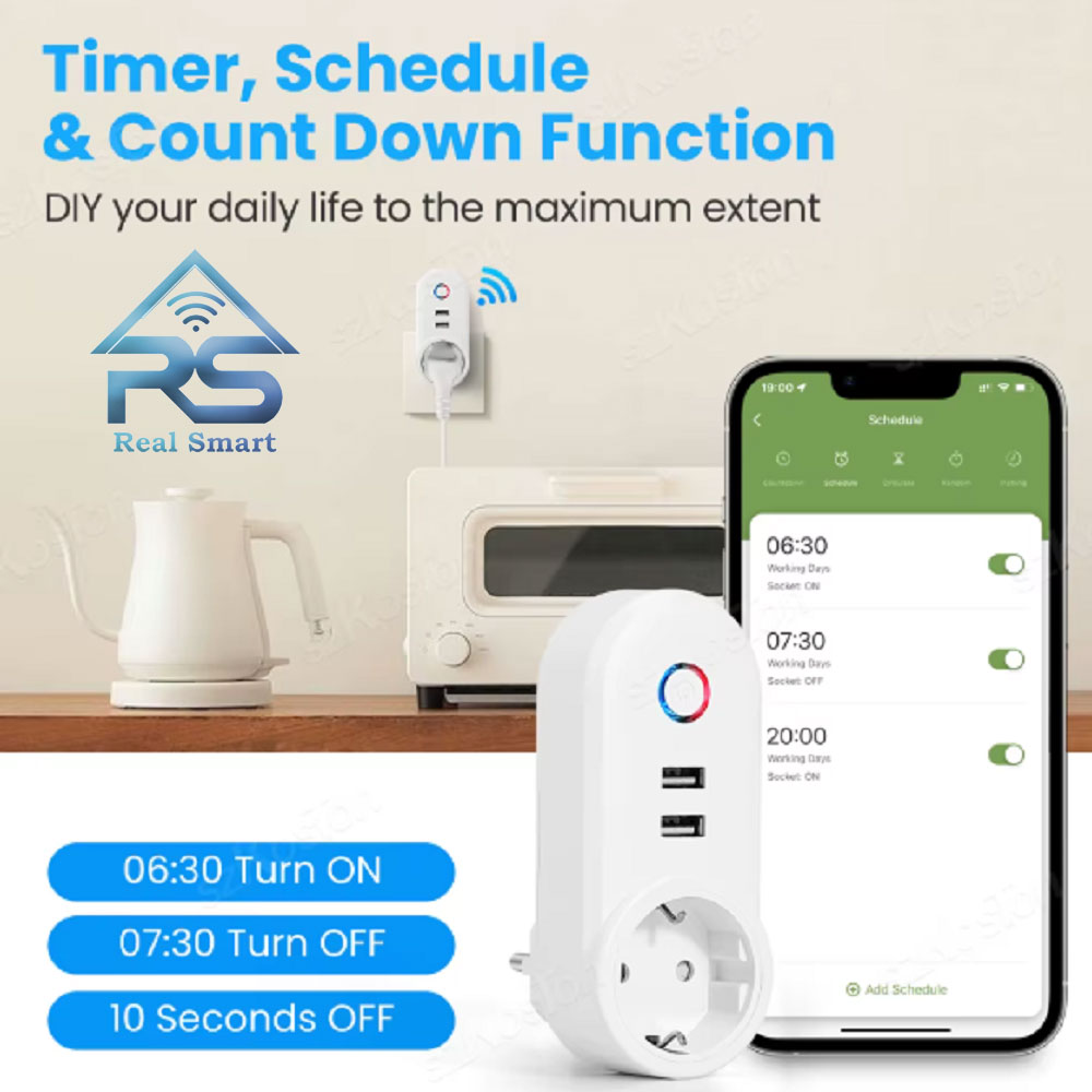 با اتصال پریز به اپلیکیشن Tuya Smart به قابلیت هایی اعم از کنترل پریز از راه دور، زمانبندی، تایمر، تعریف سناریو،